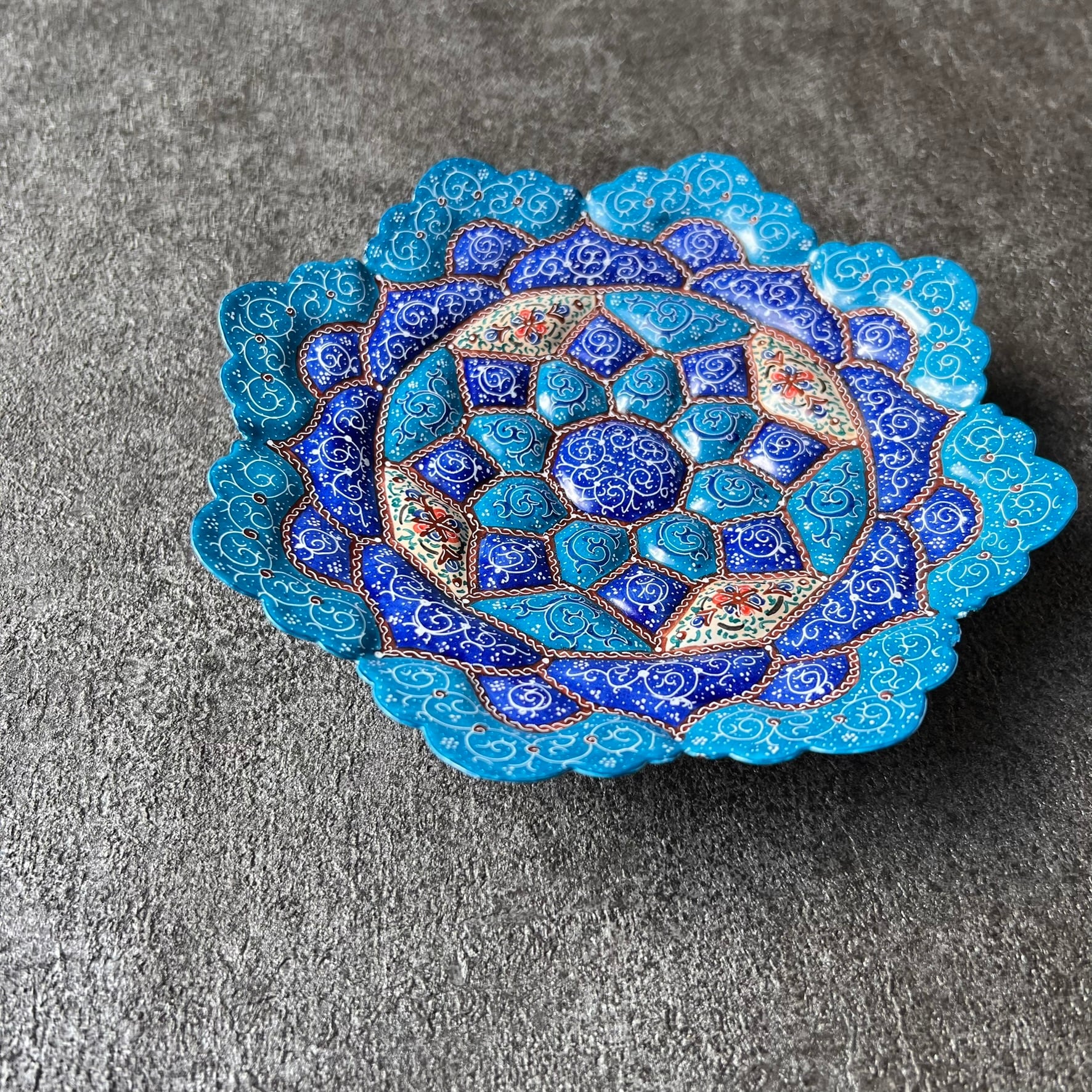 ペルシャの飾り皿(ミーナーカーリー)17cm 壁飾り【MINA KARI 017-016】ミーナカーリー