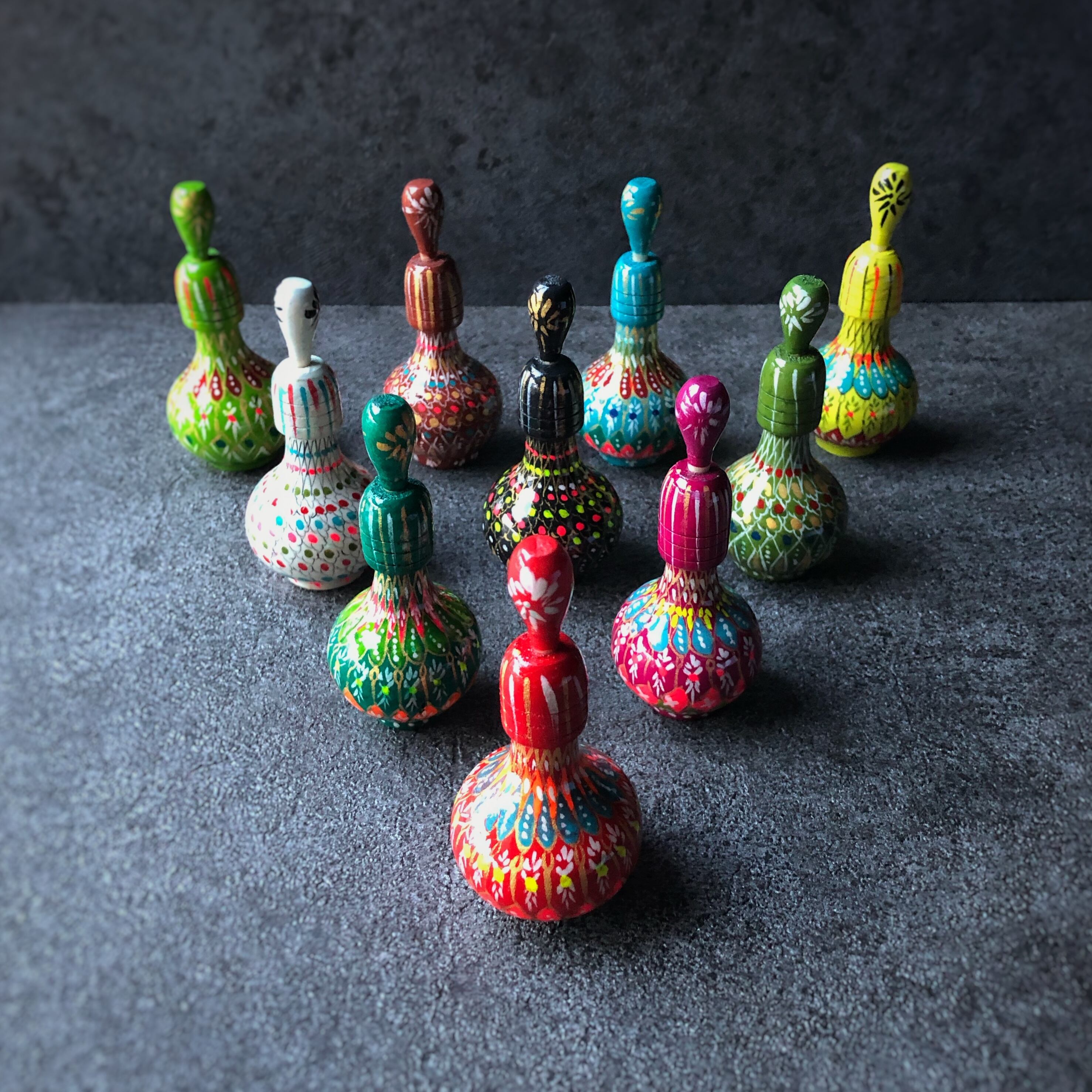 ヨーヨーのような色彩デザインが可愛い木製ボトルです。